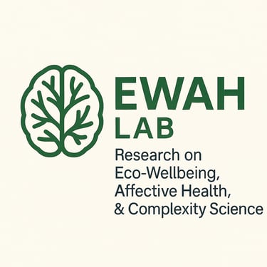The Eco-Wellbeing & Affective Health Laboratory (EWAH Lab) is an interdisciplinary research center dedicated to understanding how environmental change, emotional processes, and human wellbeing interact across time, space, and socio-ecological systems. Our mission is to redefine how science conceptualizes, measures, and promotes mental health in the context of a rapidly changing planet.